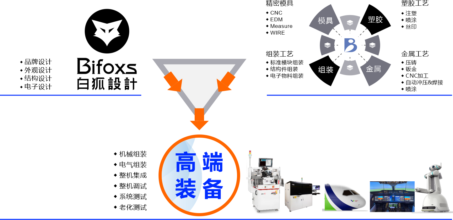 高端裝備是指在特定領(lǐng)域內(nèi)具有先進(jìn)技術(shù)、高性能和高附加值的產(chǎn)品。這些產(chǎn)品通常是應(yīng)用于各種工業(yè)、科研、國防等領(lǐng)域的設(shè)備和系統(tǒng),具有較高的技術(shù)門檻和市場競爭力。如數(shù)控機(jī)床、半導(dǎo)體設(shè)備、航天航空設(shè)備、高速列車、大型數(shù)控機(jī)器人、醫(yī)療影像設(shè)備、智能制造系統(tǒng)等等。 2020年8月,白狐設(shè)計公司和銀寶山新公司各自抽調(diào)了精兵強(qiáng)將,在東莞橫瀝銀寶山新灣區(qū)制造基地,組建了高端裝備事業(yè)部,專門聚焦于高端裝備領(lǐng)域,為客戶提供從設(shè)計研發(fā)、生產(chǎn)制造、組裝測試等一站式的JDM服務(wù)。